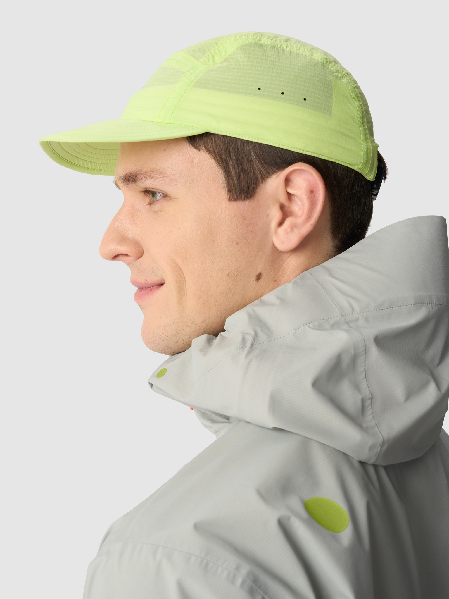 «Этот аксессуар для забегов по пересечённой местности был создан на основе нашей популярной беговой кепки. Мы позаимствовали конструкцию, но выбрали другую ткань. Вторая отличительная особенность это модели — свисток, который интегрирован в застёжку».