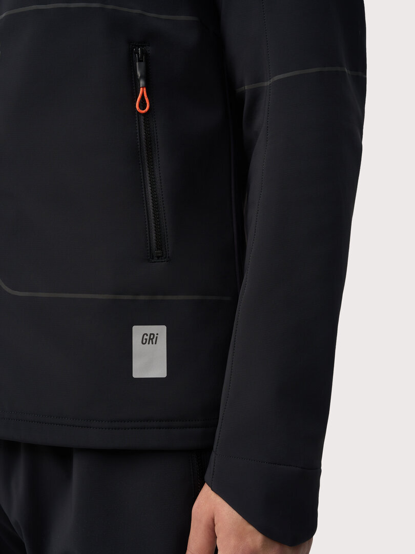 Самая тёплая куртка в коллекции GRI. Подойдёт для зимних пробежек при температуре от –7 до –20°С. Куртка сшита из ткани с мембраной 10 000/10 000 и водоотталкивающей DWR-пропиткой, которые защитят от ветра и осадков. Внутри модель утеплена микрофлисом. Спереди — мембрана 10 000/10 000, сзади — эластичный трикотаж.