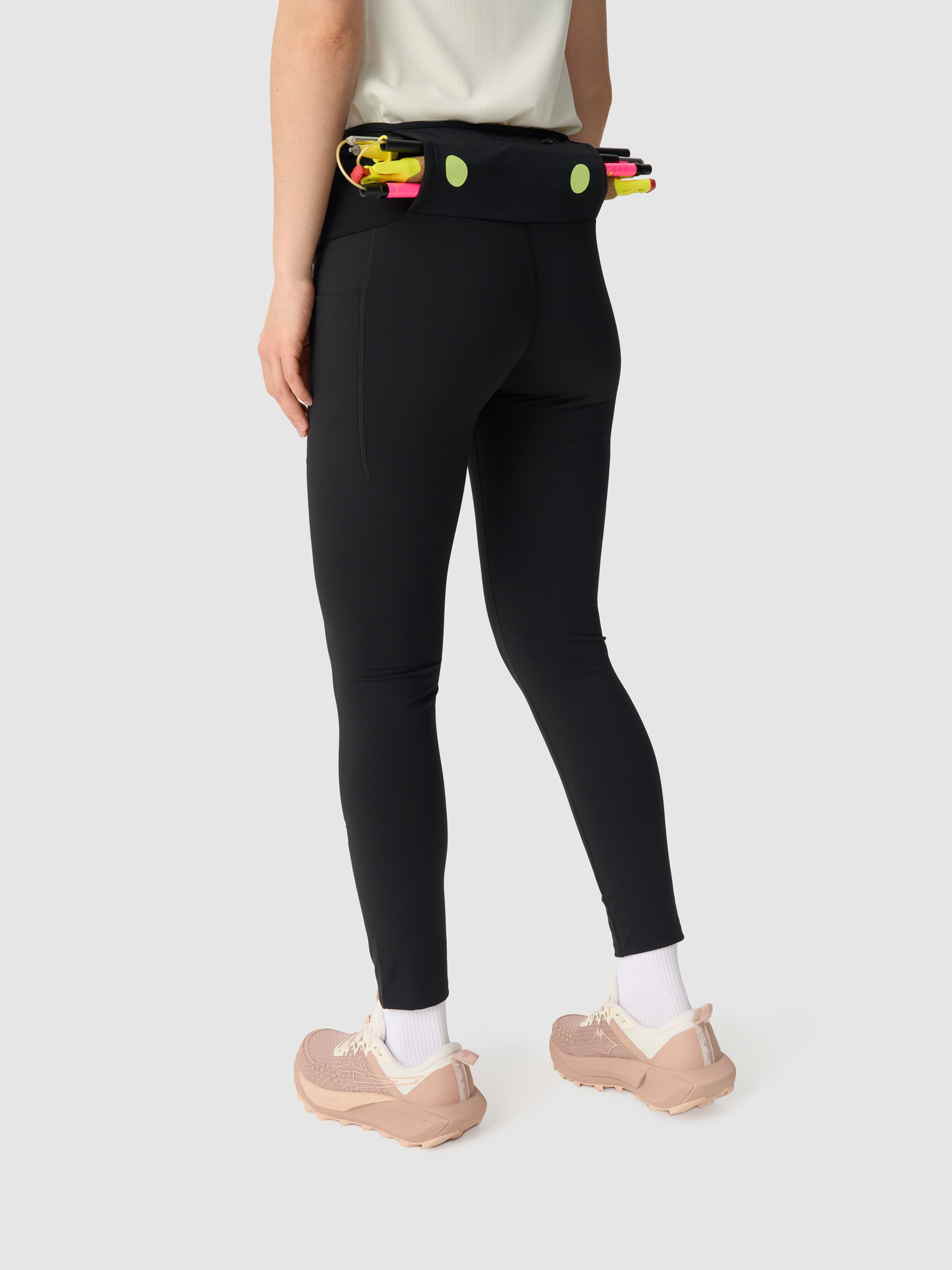 Подойдут для пробежек и соревнований по пересечённой местности при температуре от +5 до +20°С. Карманы этих лосин похожи на поясную сумку: в них поместится фляга, гели и другие необходимые мелочи. Сзади на поясе есть крепление для треккинговых палок. Задний карман на молнии вмещает телефон. Создано специально для трейлраннеров.