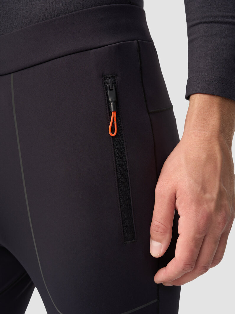 Базовые лосины для холодных месяцев. Подойдут для зимних пробежек при температуре от –5 до –15°С. Сшиты из утеплённой трикотажной ткани с начёсом. Снизу на штанинах есть молнии, чтобы лосины было удобно надевать и снимать.