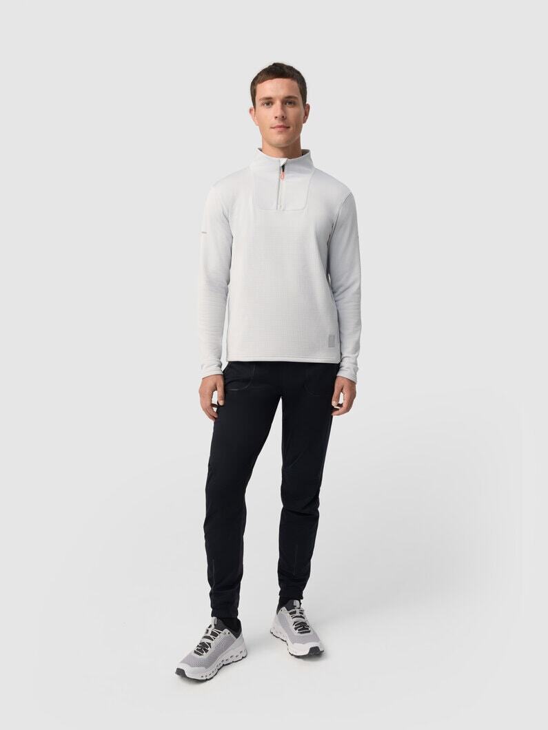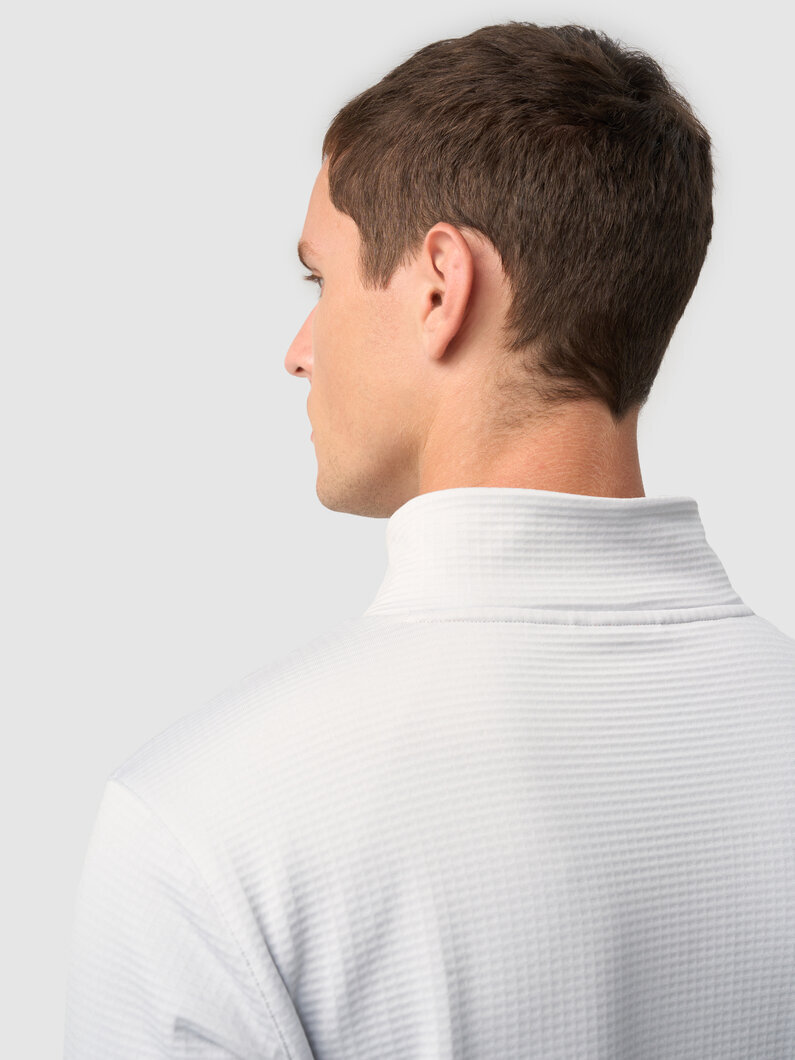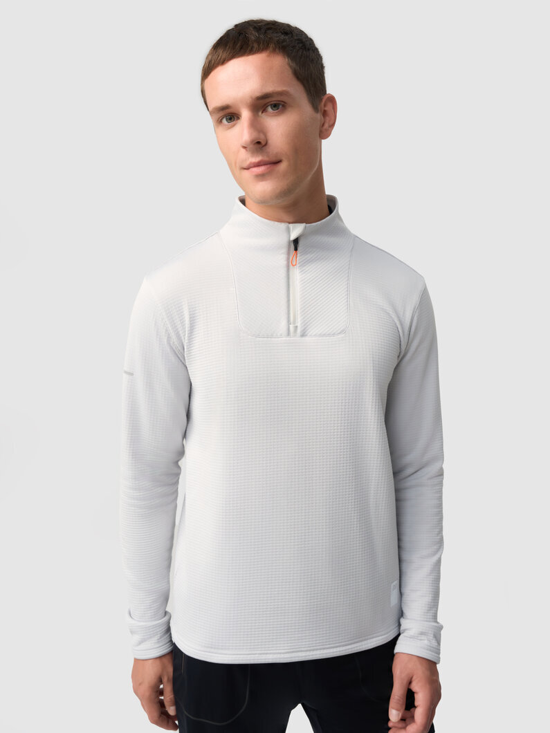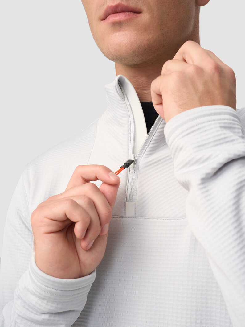 Базовая модель с высоким воротом на молнии. В зависимости от погоды её можно носить без верхнего слоя, надевать под куртку или жилетку. Подойдёт для зимних пробежек при температуре от –5 до –15°С. Рубашка сшита из дышащей «вафельной» ткани с влагоотводящей пропиткой QuickDry®.