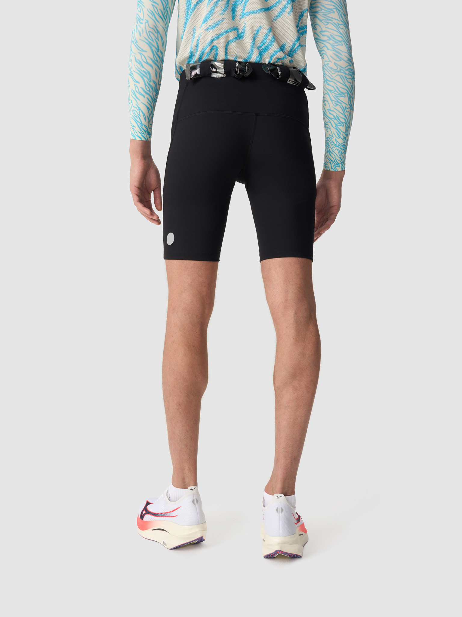 «Это облегчённый продукт для быстрых тренировок и соревнований. Мы использовали новую ткань: она легкая, но одновременно с этим плотная и эластичная. У этой модели минимальное количество швов и максимально продуманный функционал: помимо карманов, на поясе есть петли для гелей.