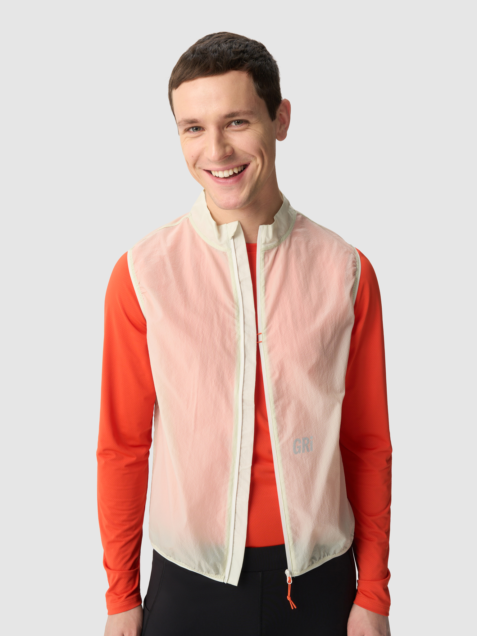 «Ещё один новый продукт в коллекции GRI — ультралёгкая, почти невесомая жилетка. В этой модели мы отказались даже от карманов, чтобы не утяжелять изделие фурнитурой.