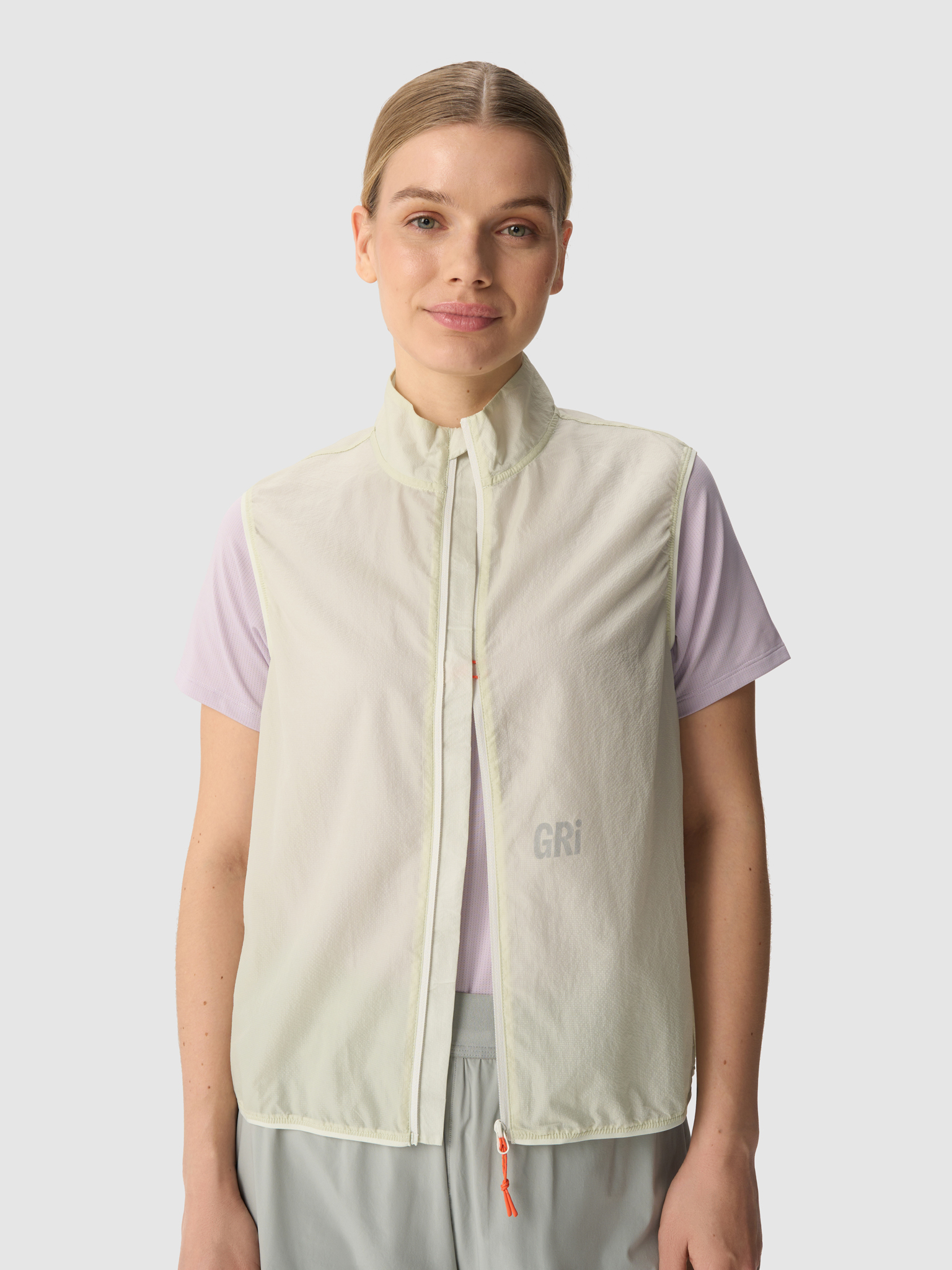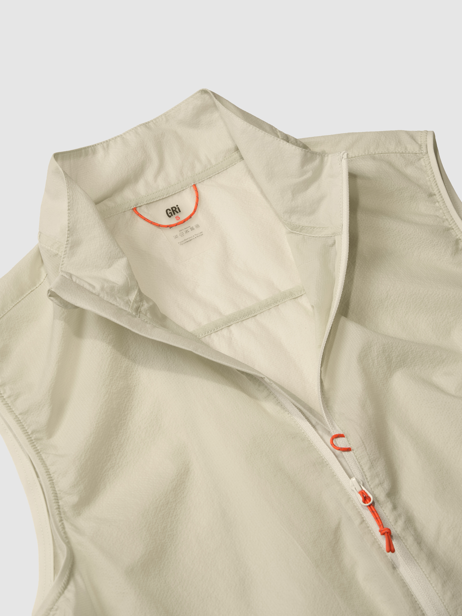 «Ещё один новый продукт в коллекции GRI — ультралёгкая, почти невесомая жилетка. В этой модели мы отказались даже от карманов, чтобы не утяжелять изделие фурнитурой.